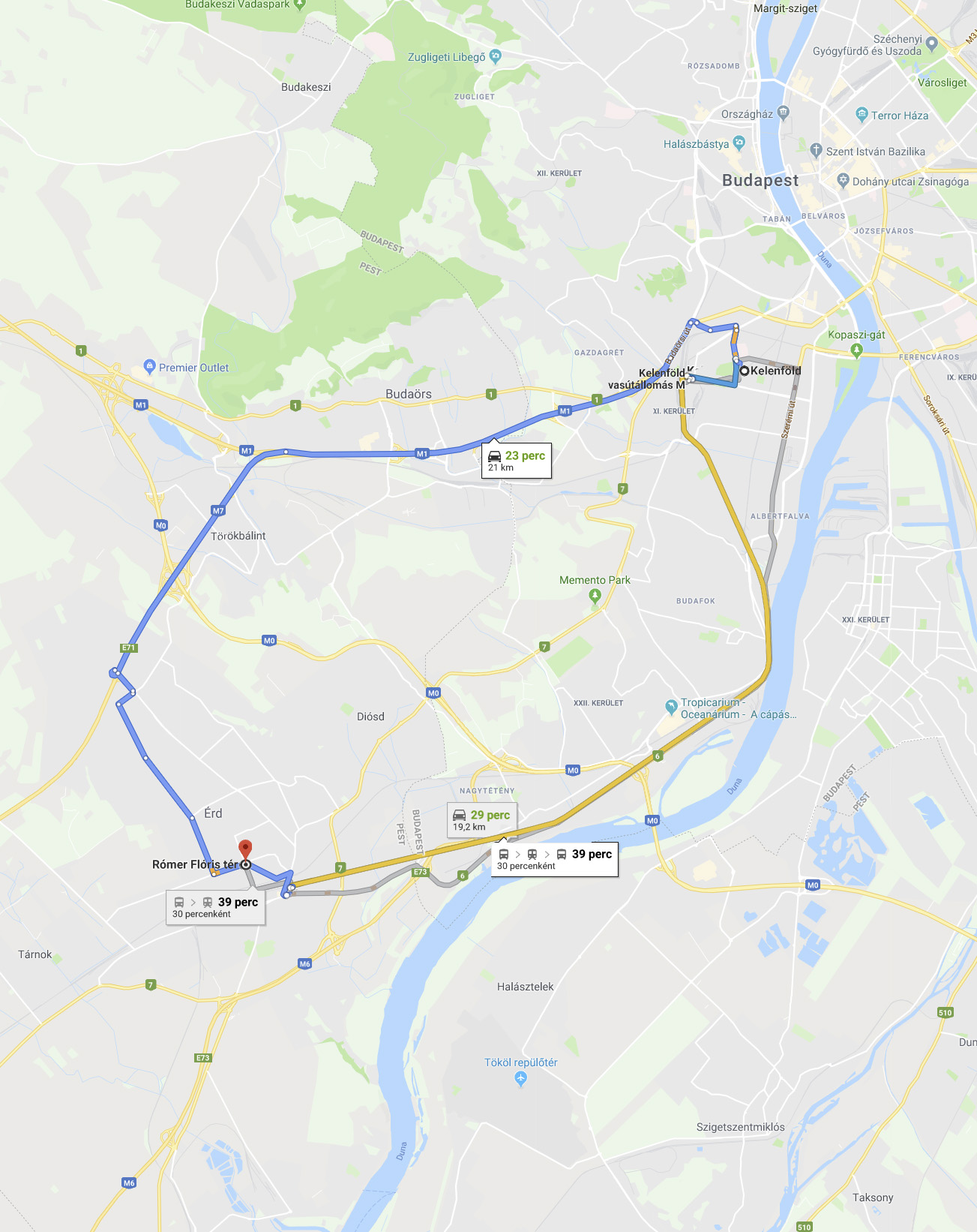 Érd-alsó: 1,4km (17p gyalog | 10p busszal | 5p kocsival)