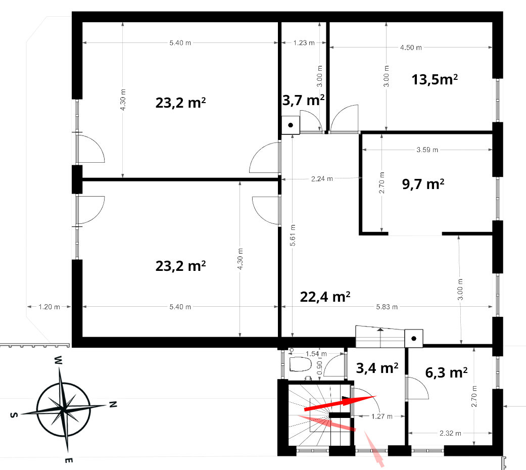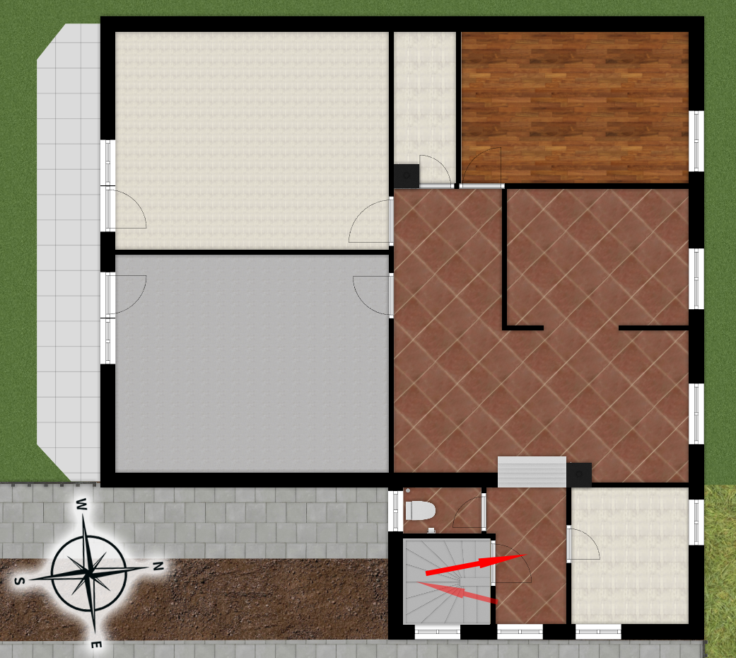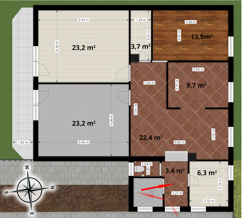A 85nm-es lakás a ház felső szintje amihez egy külön lépcsőházban lehet feljutni és a lakáshoz a 808 nm-es kerthelyiségből 151 nm tartozik külön jogilag elválasztva.
